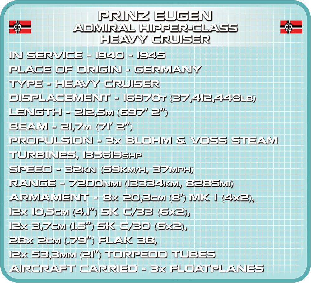 Weiterführende Links zu "Cobi Prinz Eugen Heavy Cruiser Historical Collection Modell Nr.4823"
